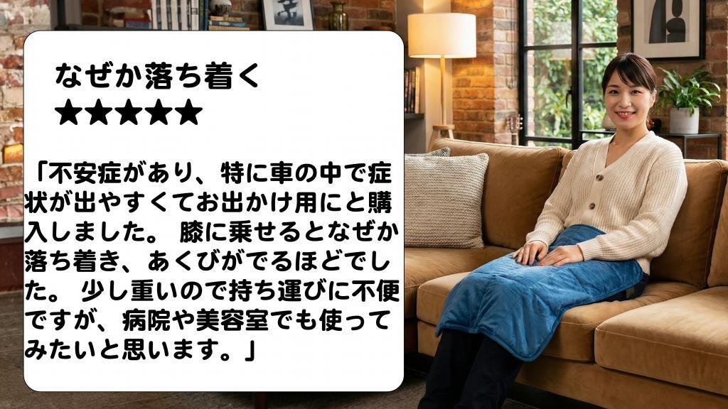 パニックになりそうなときでも、重いひざかけをひざに乗せたり触ったりして落ち着くようになりました。