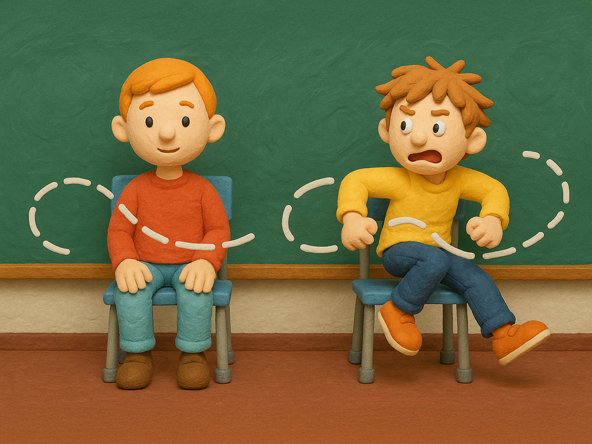 現実の教室では、友達の声や動きに反応してさらに動くこともあれば、逆に意識して動きを抑えることもあります。