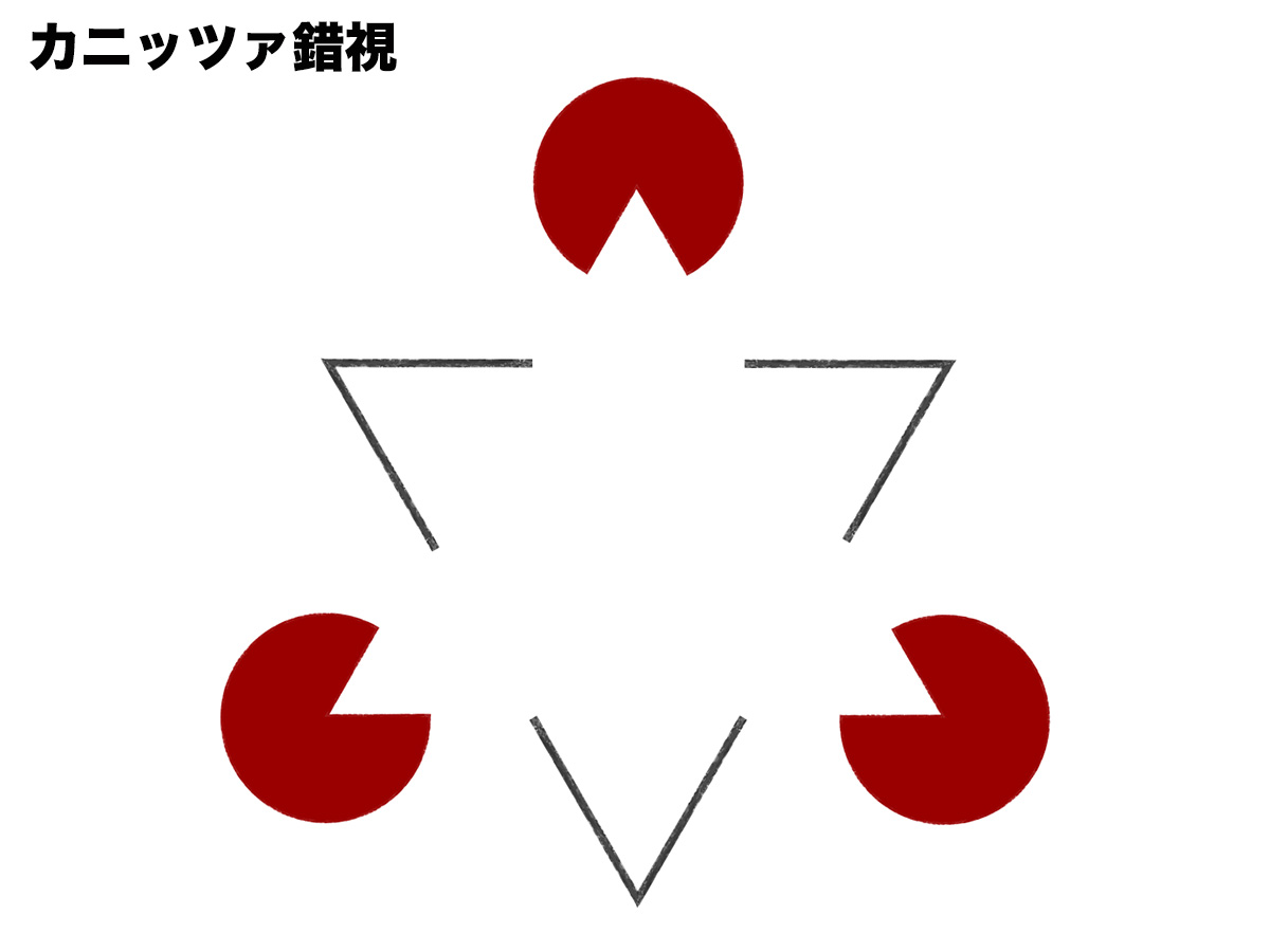 そして実際には存在しない線が浮かび上がる「カニッツァ錯視」がありました。