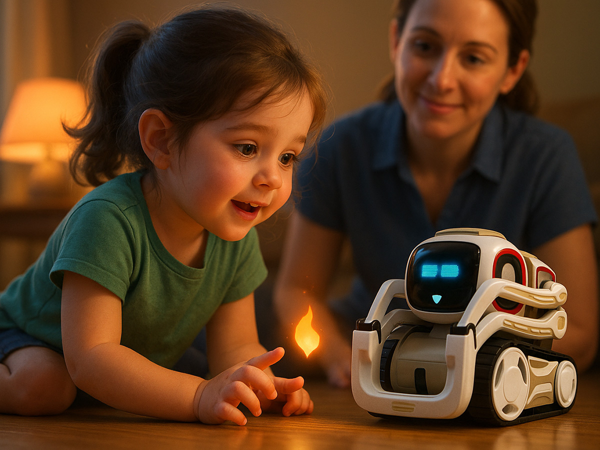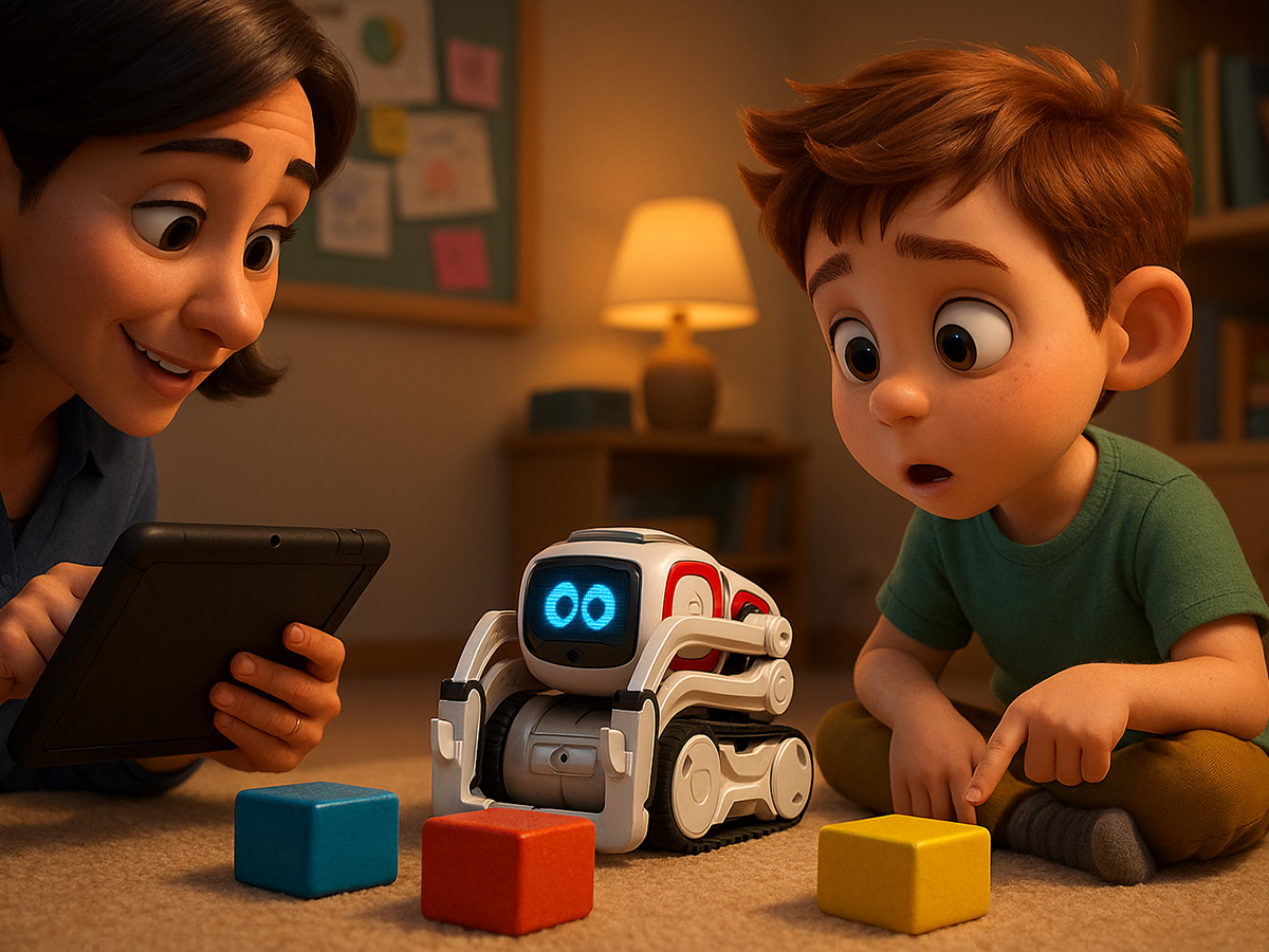 ピクサースタイルの表情を見せたり、簡単な動きをしたりできるロボットで、アニメーションのような「顔」が画面に表示され、子どもたちに親しみやすいデザインになっています 。