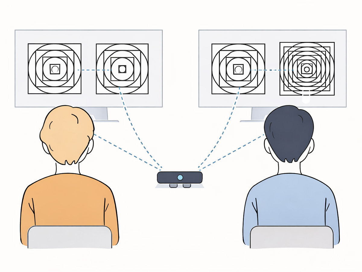 参加者たちは、画面の左右に並べて提示される二つの幾何学図形を、特別な指示を受けることなく自由に眺めます。