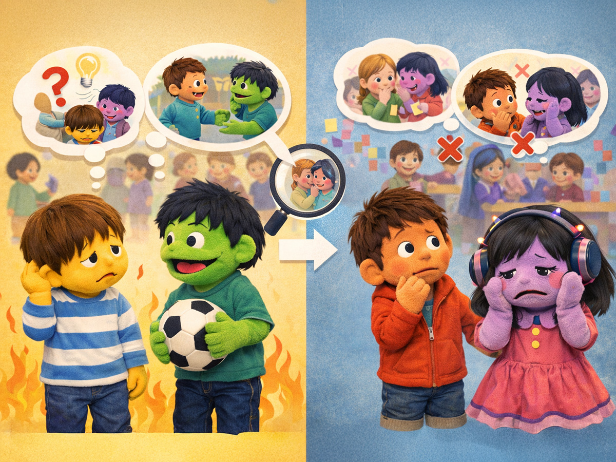 興味深いのは、その解釈です。研究者たちは、自閉症的特性が高く心の理論が低い子どもは、他人の評価や視線をあまり強く意識しないため、かえって社交不安が強くなりにくい場合もある可能性を指摘しています。