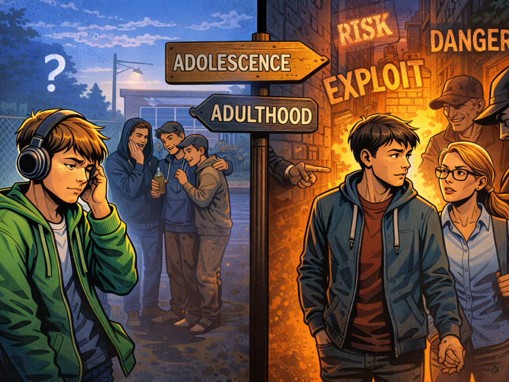 また、自閉症のある若者は、社会的手がかりの読み取りの難しさや対人関係での誤解など、別の脆弱性を抱える可能性があります。