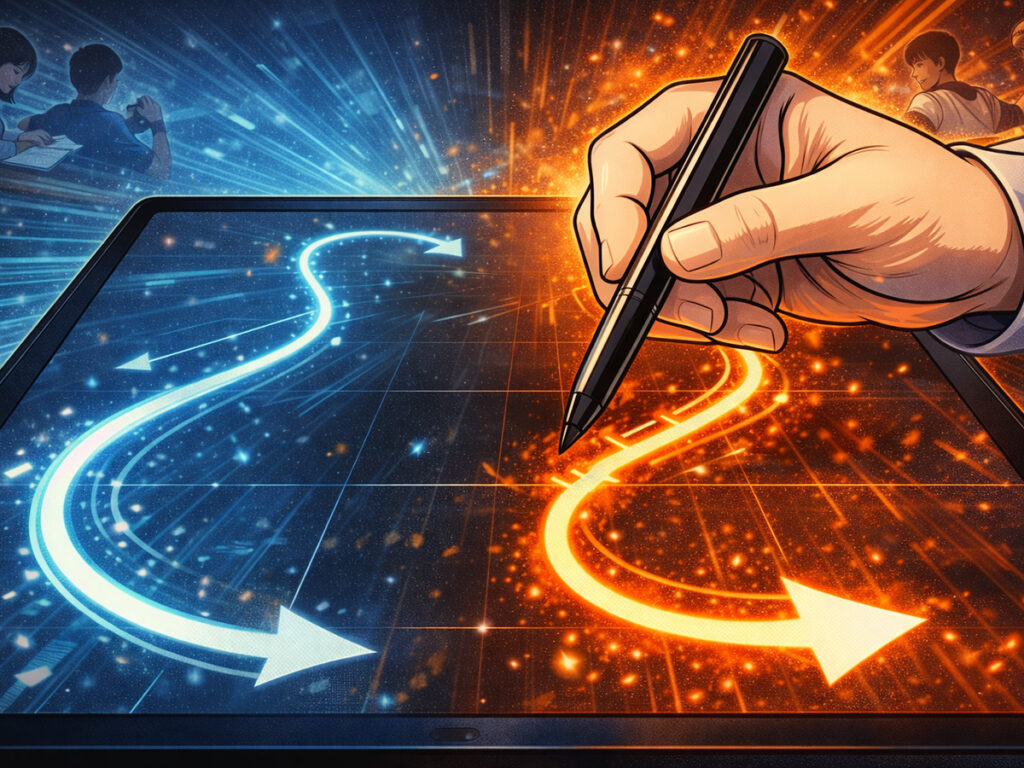 研究チームは、スタイラスの先端の位置を1秒間に133回という高い精度で記録し、動きの「速さ」と「曲率(どれくらい強く曲がっているか)」の関係を数学的に計算しました。