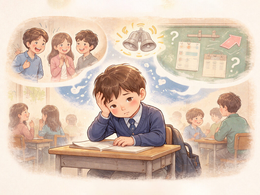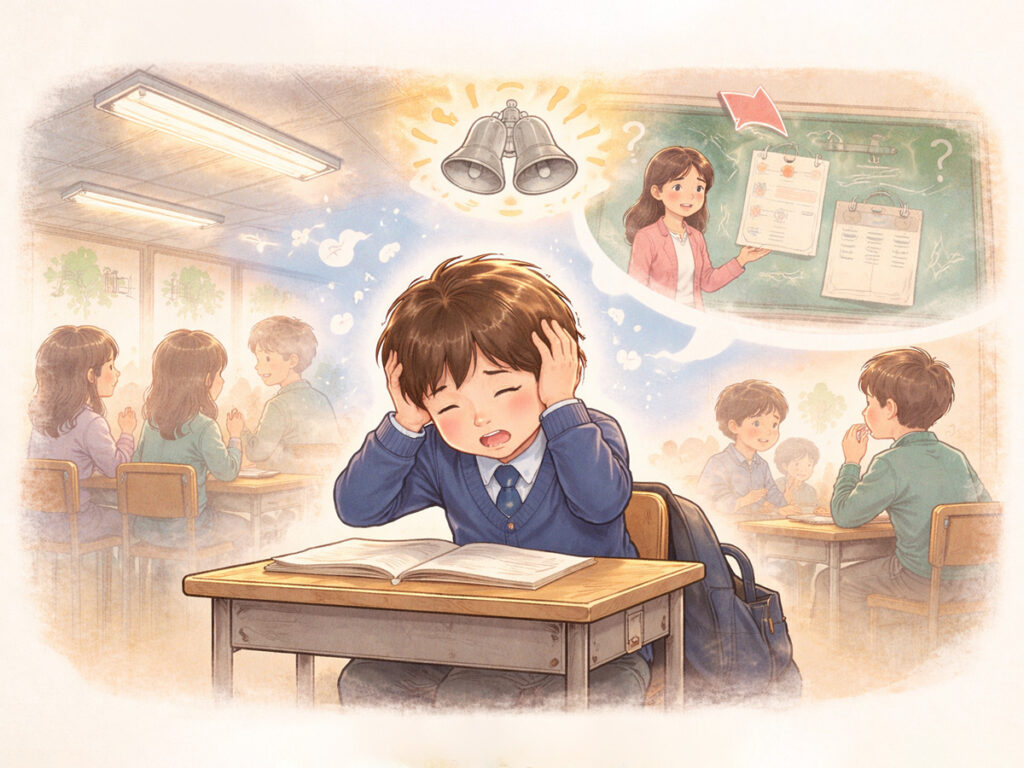 自閉症のある子どもは、学校という環境の中で、いくつもの見えない負担を抱えています。
