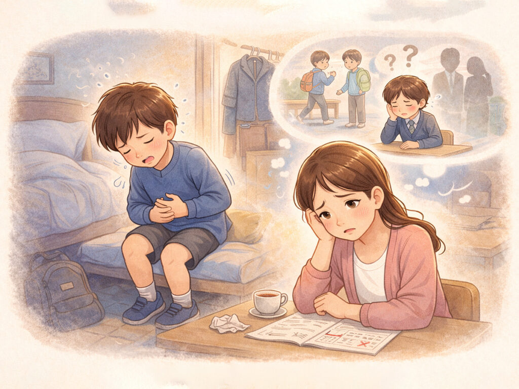 研究では、朝の腹痛や頭痛、吐き気などが学校回避と関連することが指摘されています。