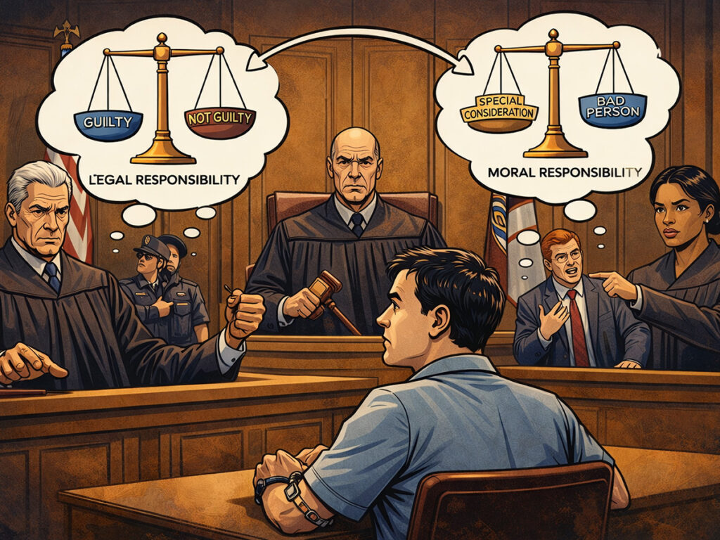 - はい、診断は情状酌量として刑を軽くする方向に働くとされつつ、法的責任は高く評価され、道徳的責任は低く評価されがちです。