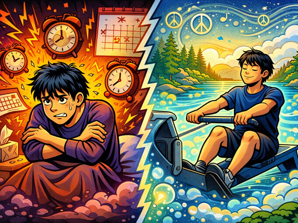 この活動を行った日は一日を通して落ち着いて過ごせると感じているそうです。もしローイングができない日が続くと、不安が強くなり、感覚の刺激にも敏感になってしまうと話しています。